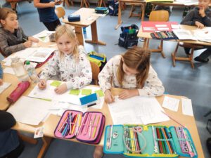Nach der offiziellen Zeremonie durften die neuen Schülerinnen und Schüler endlich ihren Klassenraum betreten. Dort erwartete sie ihre erste Unterrichtsstunde, in der sie erste Eindrücke vom Schulalltag sammeln konnten. Für die Eltern gab es währenddessen die Gelegenheit, bei Kaffee und Kuchen, ins Gespräch zu kommen und sich auszutauschen.