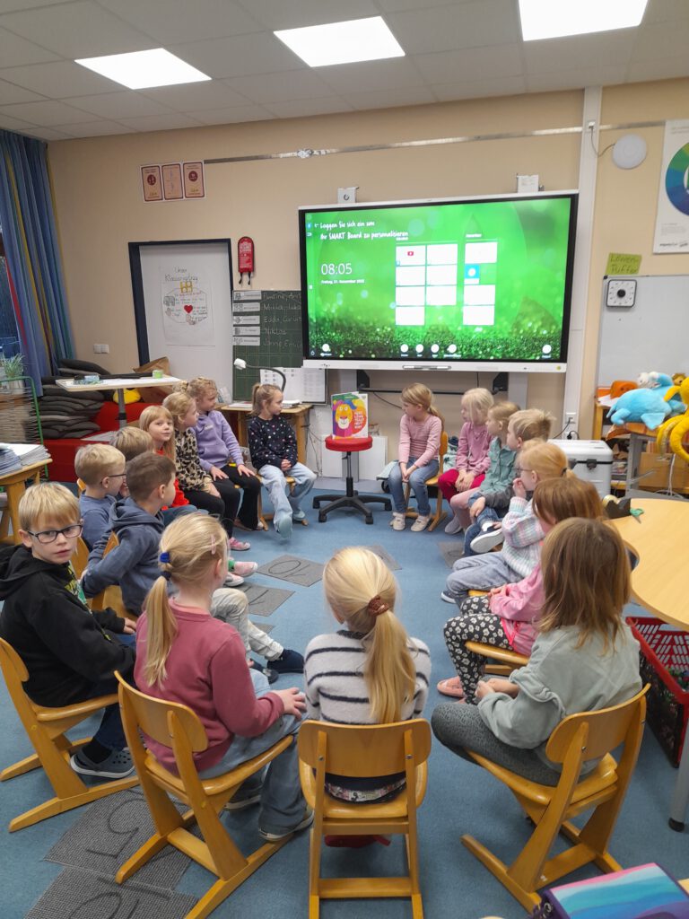 Bundesweiter Vorlesetag in der Klasse 1: „Herr Löwe trägt heut‘ bunt“