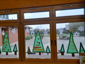 Am heutigen Dekotag (26.11.25) herrschte in allen Klassen der Grundschule eine fröhliche und kreative Atmosphäre. Jede Klasse hatte sich vorgenommen, die Fenster der Schule mit weihnachtlichem Schmuck zu gestalten und so das Schulgebäude auf die kommende Adventszeit einzustimmen.