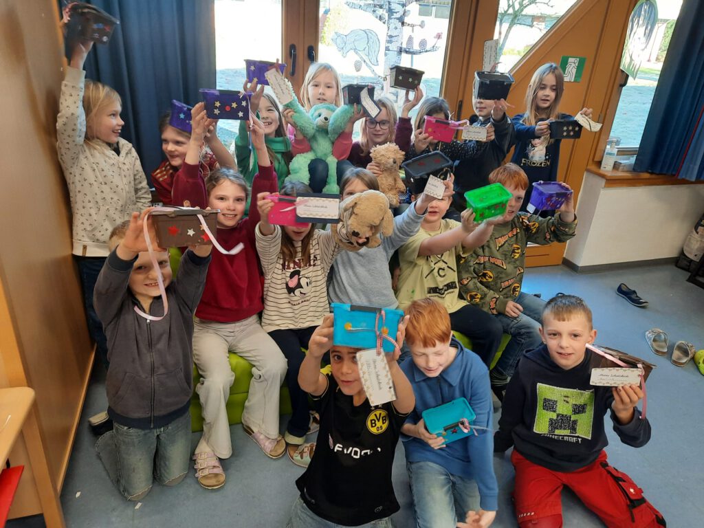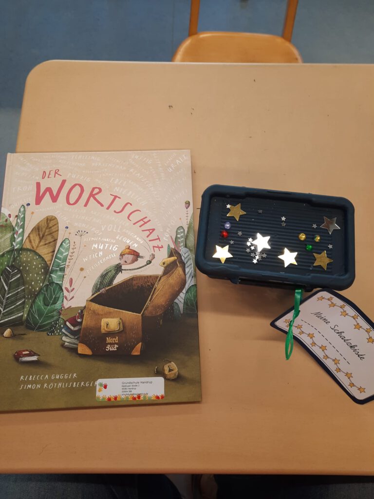 Der Einstieg in das Buch „Der Wortschatz“ begeisterte die Kinder sofort. Passend zur Geschichte bastelten sie anschließend ihre eigene Schatzkiste, liebevoll gestaltet und bereit, mit vielen besonderen Wörtern gefüllt zu werden.