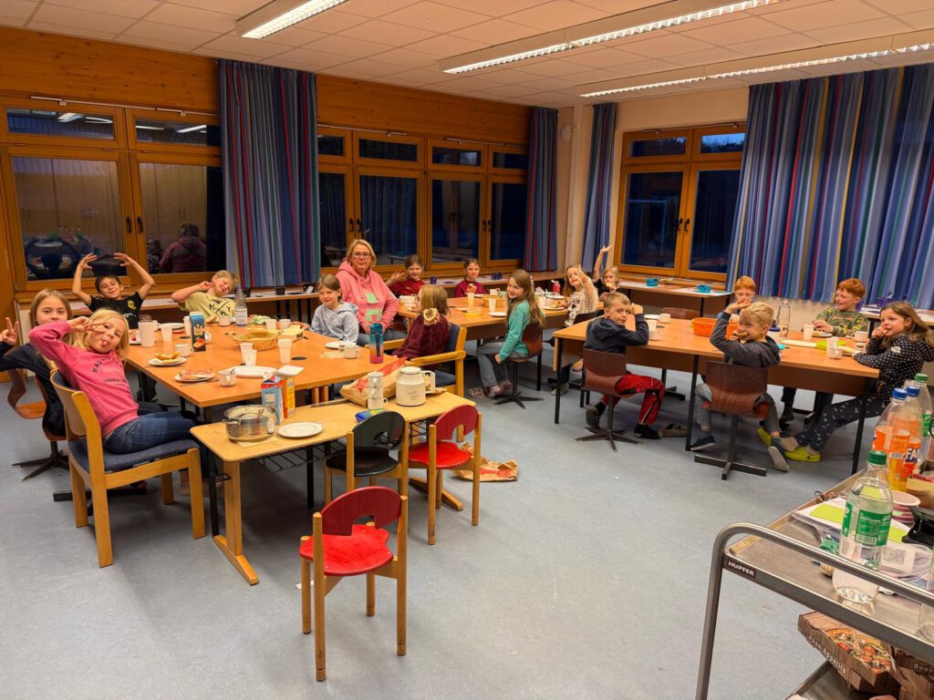 Passend zum Martinstag duftete es am 11.11. in der Grundschule Handrup herrlich nach frisch Gebackenem. Die Schülerinnen und Schüler durften gemeinsam mit Unterstützung einer Mutter Martinsgänse backen. Mit viel Freude wurde der Teig ausgerollt, die Gänse ausgestochen und mit Rosinen verziert. Nach dem Backen schmeckten die warmen Martinsgänse natürlich besonders gut – ob gemeinsam in der Klasse oder zu Hause mit der Familie.