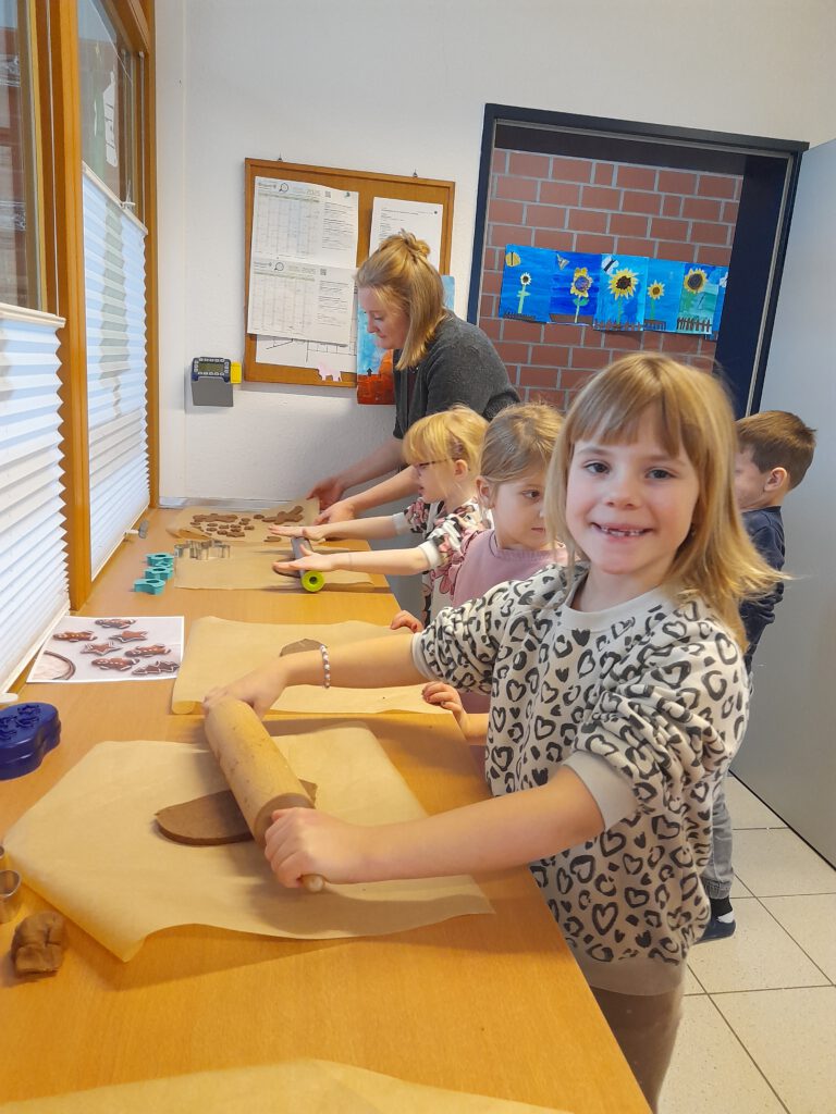 Lebkuchenbacken der Klasse 1 im Rahmen des Adventsbuches „Schnüpperle“