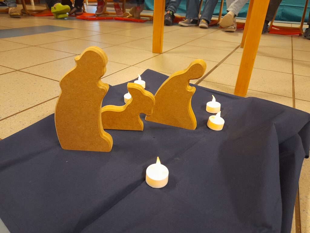 Zu Beginn entzündete ein Kind die zweite Kerze des Adventskranzes. Anschließend erzählten die Schülerinnen und Schüler in kurzen Texten von der Reise Marias und Josefs nach Bethlehem – von der Herbergssuche.